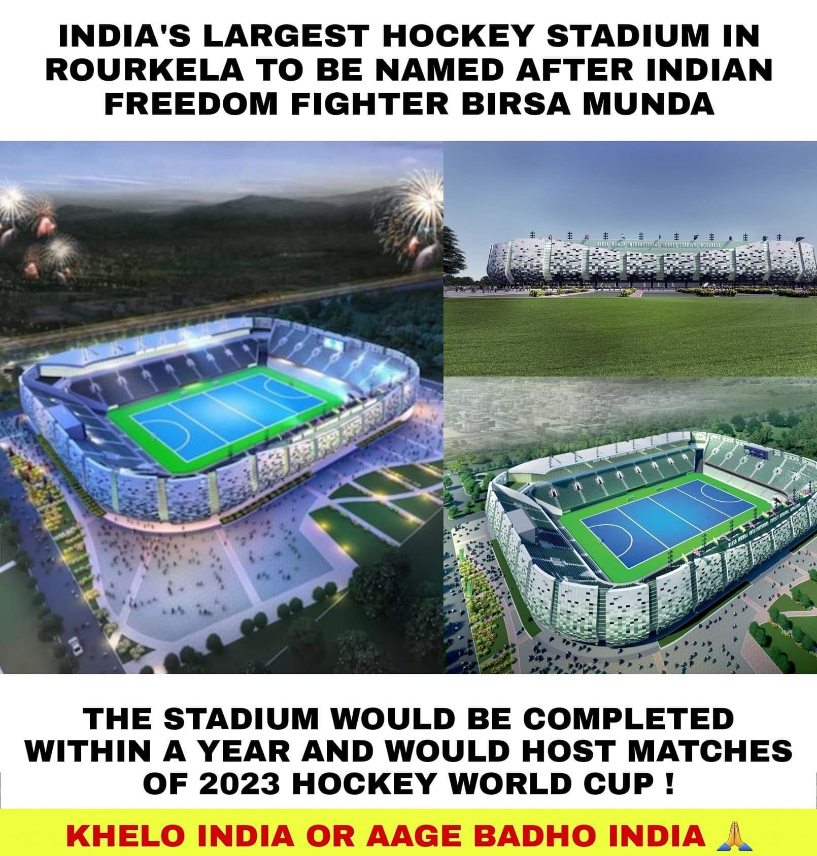 It is designed with an ultra-modern facility offering one of the finest experiences to the spectators said Singh. The Birsa Munda International Hockey Stadium is the second venue along with Kalinga Stadium for the forthcoming mens world cup which Odisha will. In February the foundation stone was laid for the 20000-seat stadium which is being built for Indias staging of the 2023 Mens Hockey World Cup.